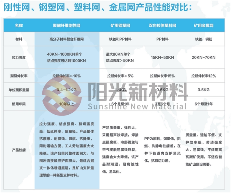 在安全性能方面,高強(qiáng)聚酯纖維剛性網(wǎng)同樣表現(xiàn)出色。它具有良好的阻燃和抗靜電性能,這在煤礦井下等易燃易爆的特殊環(huán)境中顯得尤為重要。金屬網(wǎng)在某些情況下可能會(huì)因摩擦產(chǎn)生火花,引發(fā)安全事故,而高強(qiáng)聚酯纖維剛性網(wǎng)則從根本上杜絕了這種隱患,為工作人員的生命安全和工程的順利進(jìn)行提供了有力保障。