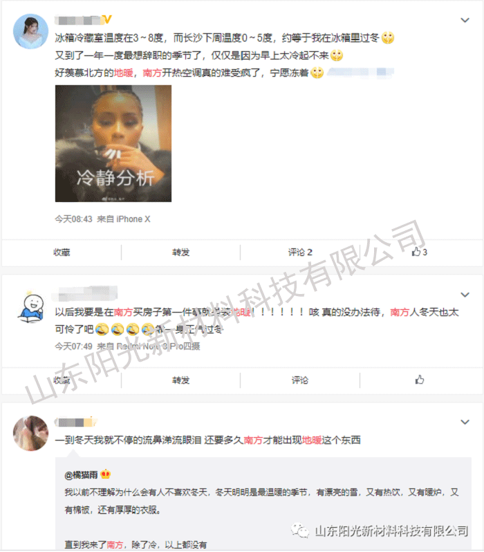 冬天又來了!每到冬季降溫時(shí),可憐的南方小伙伴們又要開始取暖靠哈氣、抖腿、搓手三連的生活了,南北方濕冷與干冷之爭也成為互聯(lián)網(wǎng)逃不掉的一個(gè)話題,面對北方有地暖,在家穿短袖吃冰棍的情況,南方小伙伴表示羨慕不已。