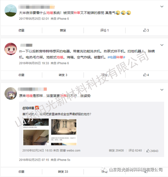 近幾年,隨著生活水平的提高,南方地區(qū)的家用采暖設(shè)備也已從奢侈品逐漸變?yōu)榱似胀ㄏM(fèi)品,所以越來越多的人家也都將地暖納入和中央空調(diào)、新風(fēng)并列為必需的裝修三件套里了。微博上的小伙伴也紛紛從各個(gè)渠道種草地暖~