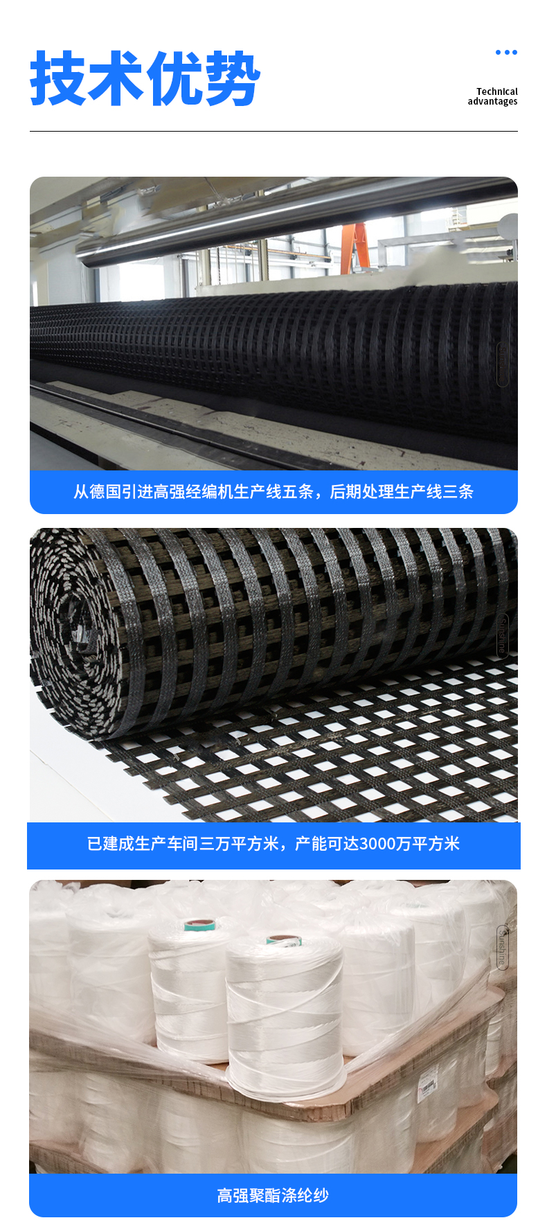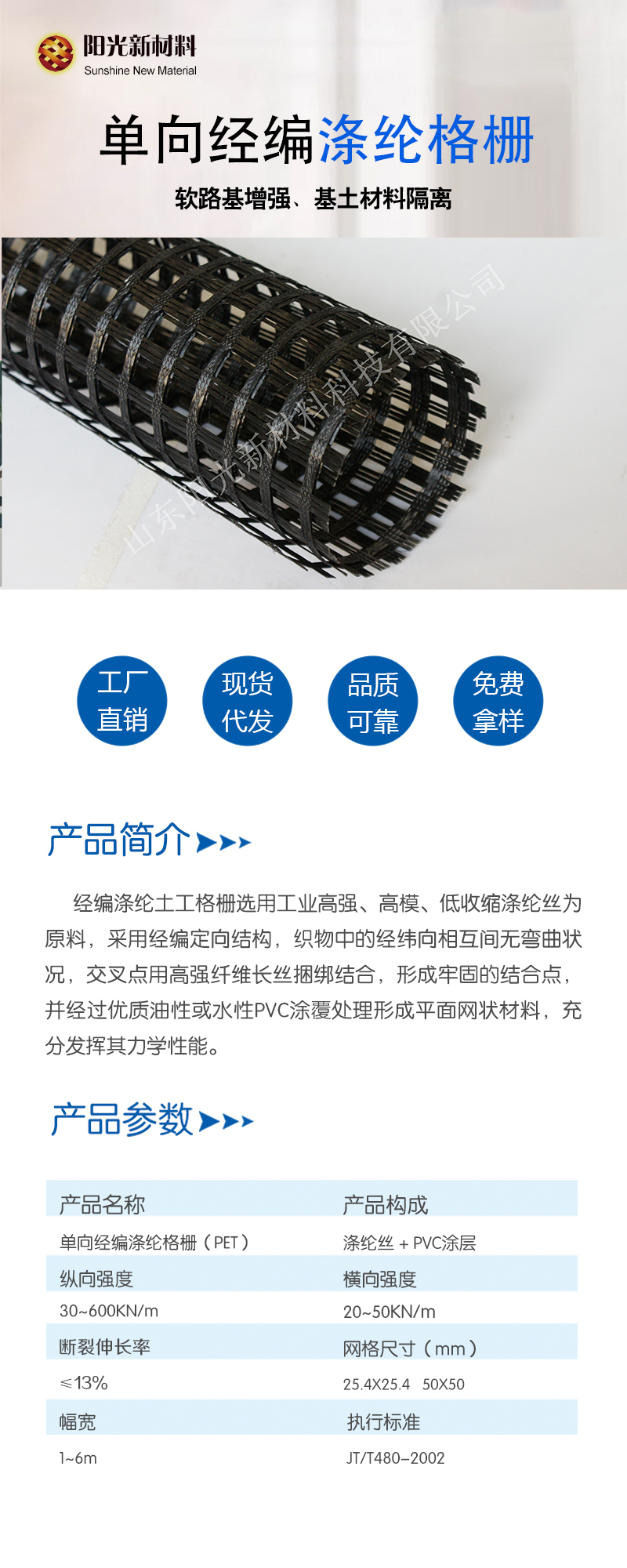 經(jīng)編滌綸土工格柵,是土工合成材料家族中的明星產(chǎn)品。它以高強度滌綸工業(yè)長絲為原料,通過經(jīng)編定向織造工藝,將經(jīng)緯向紗線巧妙編織成網(wǎng)格坯布,再經(jīng)PVC涂覆加工,最終成為具有高強度和穩(wěn)定性的平面網(wǎng)狀結(jié)構(gòu)材料。這種獨特的生產(chǎn)工藝,賦予了它普通材料無法比擬的性能優(yōu)勢。