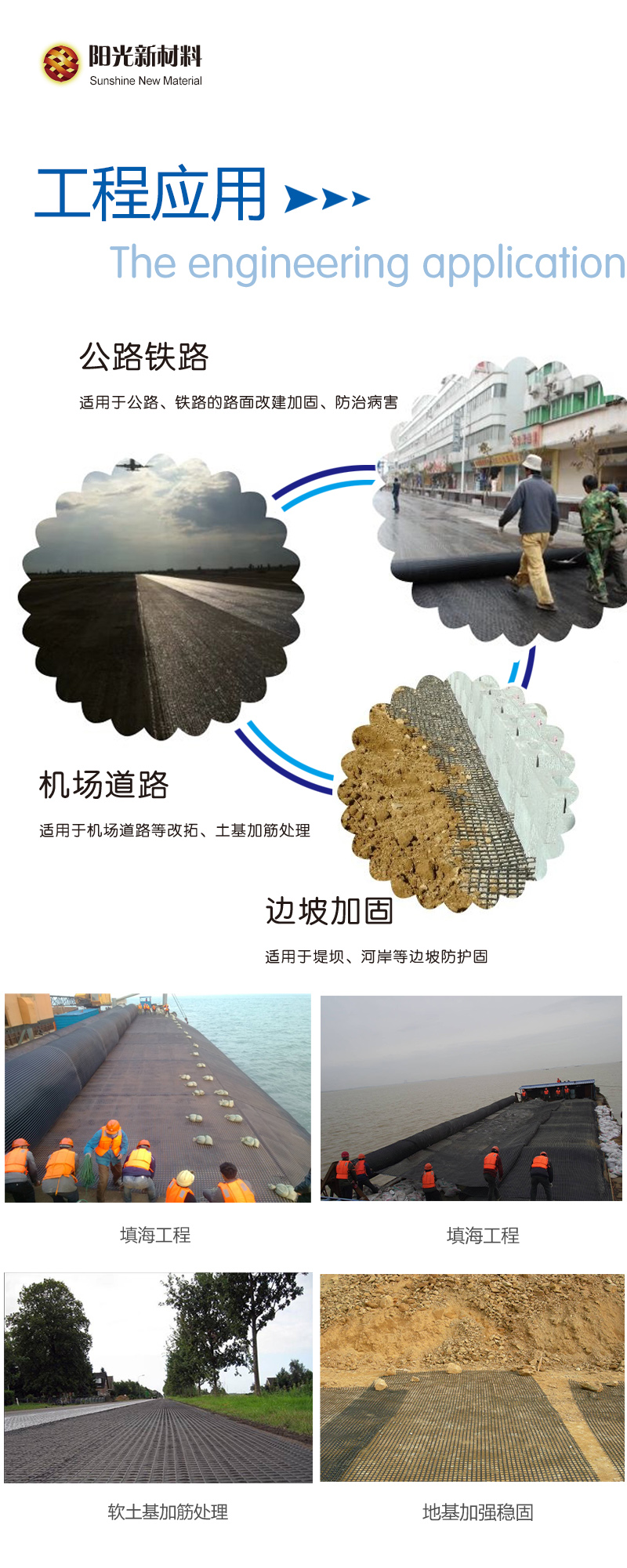 1. 道路工程:在公路、鐵路建設(shè)中,用于軟土地基處理,增強路基強度,減少不均勻沉降。在新建高速公路時,在軟土地基上鋪設(shè)經(jīng)編滌綸土工格柵,可大幅提高地基承載力,避免路面出現(xiàn)裂縫、凹陷等病害,確保行車平穩(wěn)、安全。